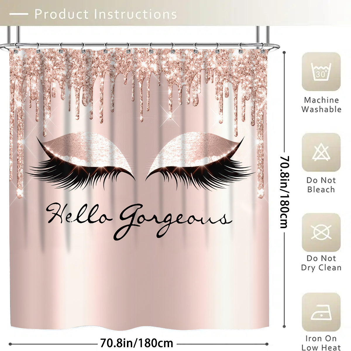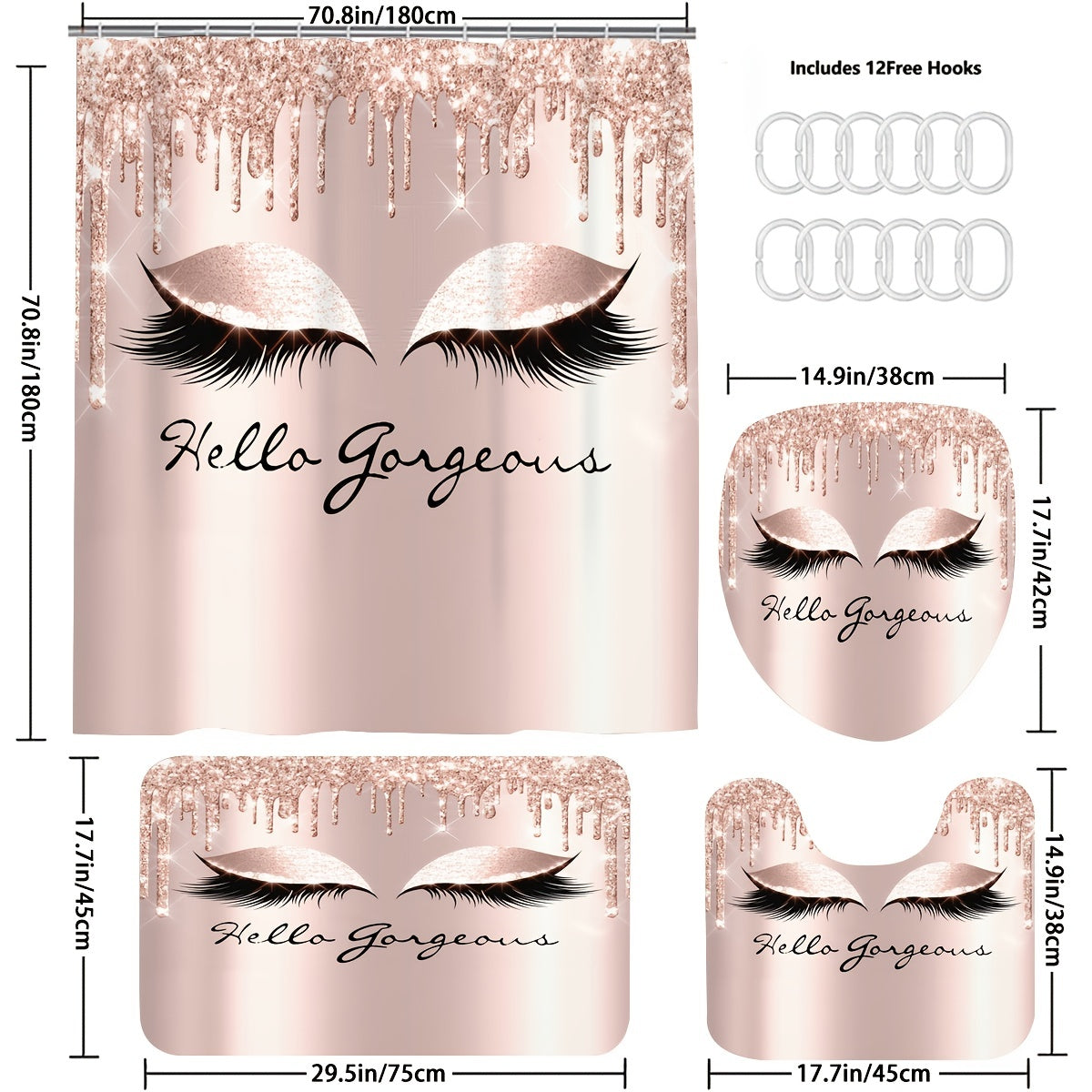Transform your bathroom into a stylish and comfortable space with this 70.8 inch x 70.8 inch Eyelash Waterproof Shower Curtain Set. The set includes a shower curtain, blanket, toilet cover, and 12 shower curtain hooks, making it an all-in-one solution for your bathroom decor needs. The waterproof material makes it suitable for use in the shower, while the eyelash pattern adds a touch of modern flair to your space. Whether you're looking to update your bathroom or just add a pop of style, this shower curtain set is the perfect choice.